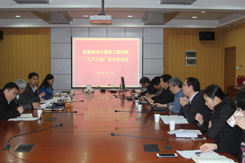 1月12日上午,船建学院领导班子“三严三实”民主生活会在木兰船建大楼A1002召开。上海交大副校长吴旦出席会议,学院全体领导班子成员参会。会议由院党委书记张卫刚主持。