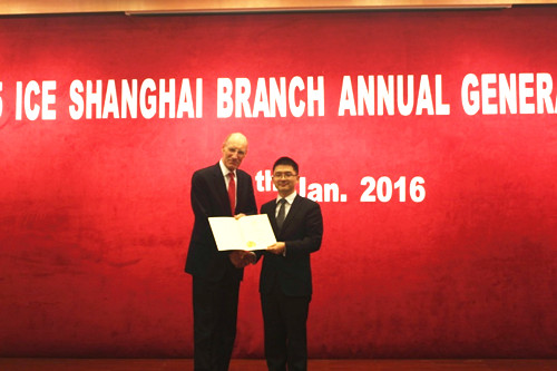 举行的ICE上海分会2015年年会上, ICE主席John Armitt爵士亲自为二人颁发了FICE证书。