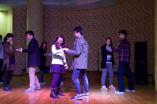 伴随着525街舞协会的激情热舞,舞会拉开了序幕。紧接着由船建学院成涛演唱了一首《新不了情》,余音绕梁,全场报以热烈的掌声。接下来的游戏环节更是充满了欢声笑语。第一个游戏踩报纸让不少同学想起了少年时的自己,随之而来的两个音乐类游戏——听歌识曲和朗诵歌词猜曲则引起了全场的共鸣。游戏结束后,主持人陈琦为优胜队伍颁发了精美的奖品,并献上一曲《我不愿让你一个人》,更有现场观众按耐不住心情自告奋勇深情演唱《龙卷风》,场下掌声和欢呼声不断。
