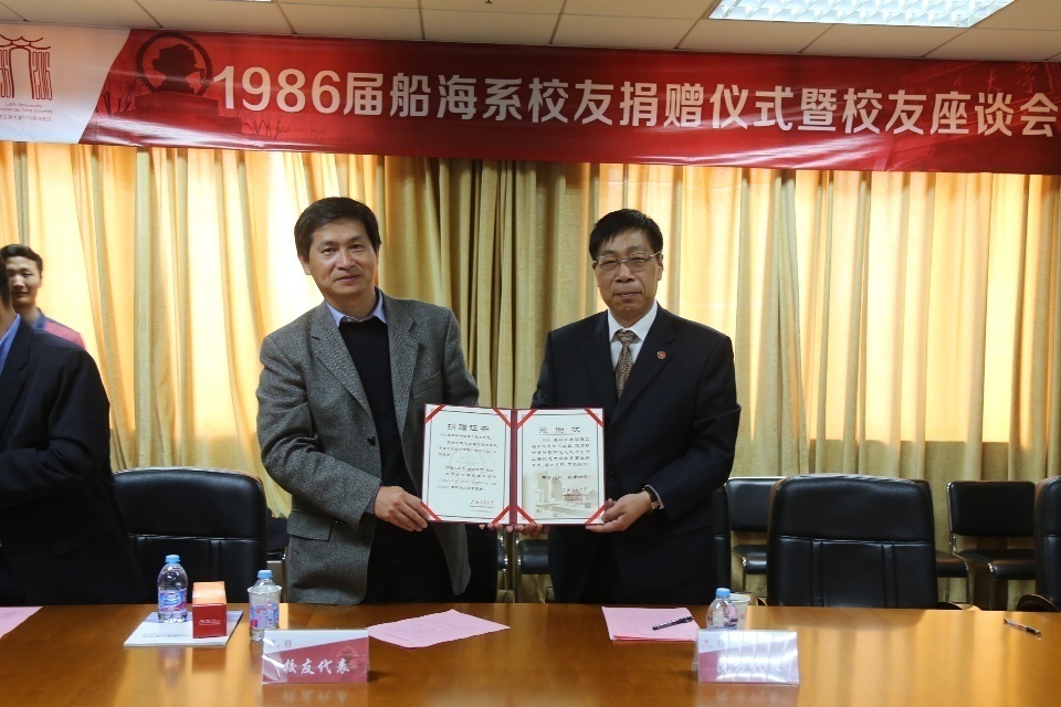 秉承着“饮水思源”的校训,老校友们始终关心并高度支持学院发展。下午2时30分,86届船海系校友捐赠仪式在木兰船建大楼A1008举行,凌奇、蔡礼洪、陈维林、邓林军等86届校友及学院部分2015级硕士研究生出席了捐赠仪式,仪式由船建学院副院长彭涛主持。学院党委书记张卫刚与校友代表凌奇共同签署了捐赠协议,并向校友们颁发了捐赠证书。