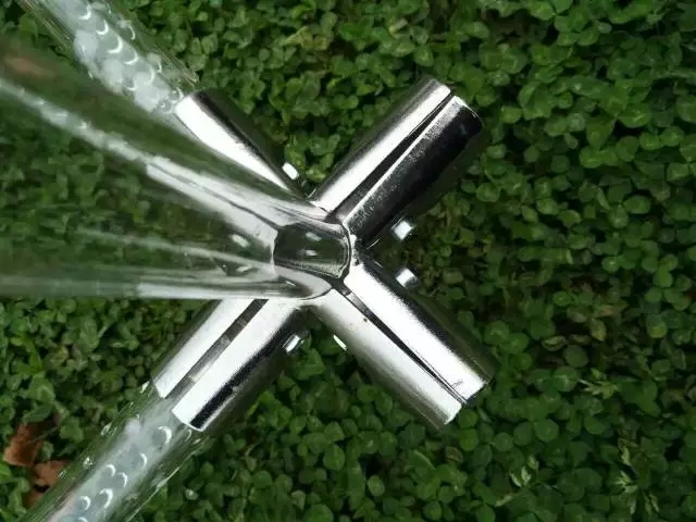 磁铁组使用磁铁、十字节点和亚克力管完成主体结构搭建。活动亚克力管的两端固定有磁铁,固定框架上则串有互斥的磁铁和粘有铁球的节点。巧妙利用磁铁之间的引力,使加建和拆卸非常的迅速方便。作品旁留出一部分亚克力管给校友完成继续搭建。夜间,在亚克力管底部放置小灯泡,在灯光的映衬下,能够呈现出透明亚克力管材料自身的美感。