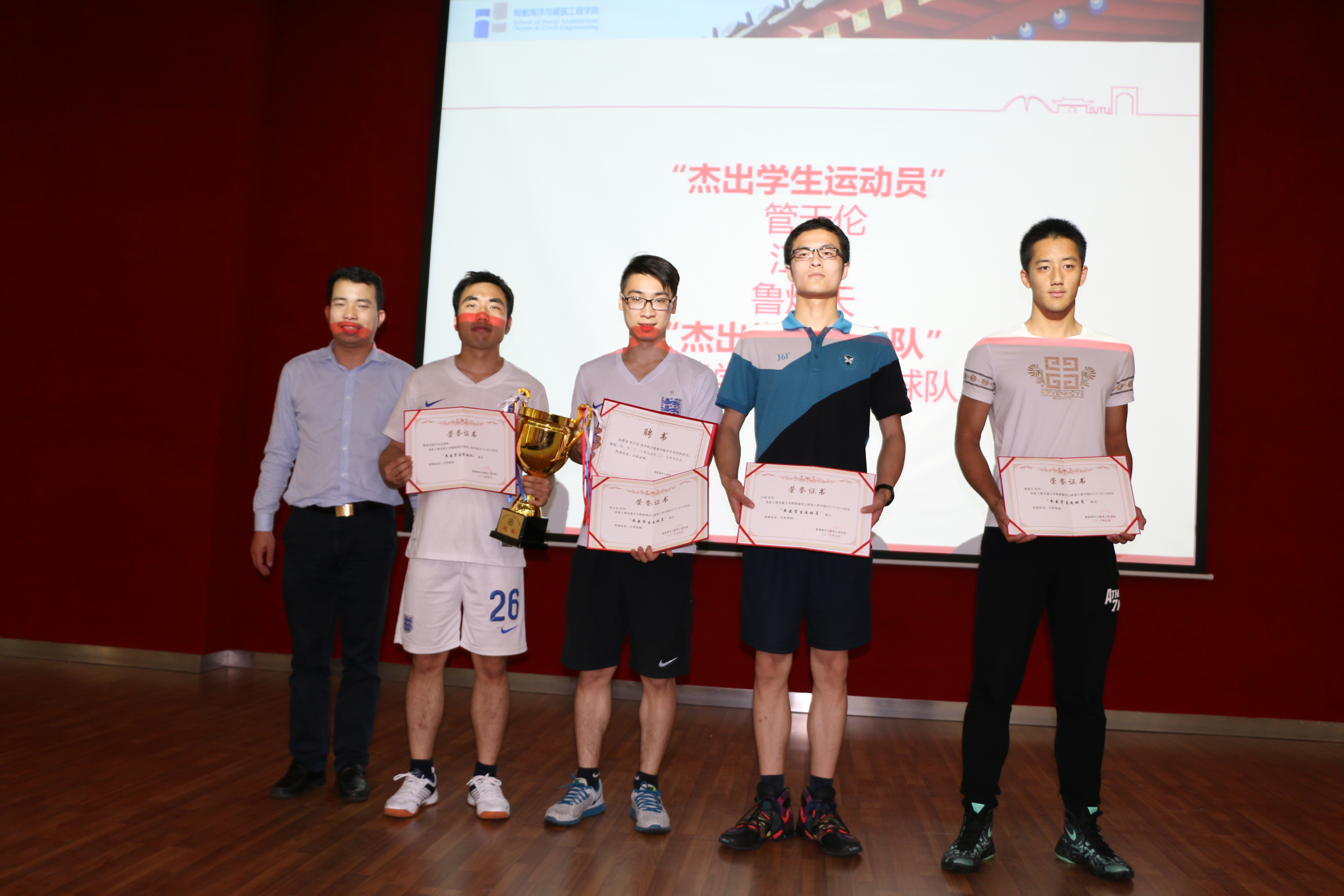 在过去的一年中,船建学子积极参加学校各类体育活动,在希望杯、体总杯、第46届校运会等各项赛事中都有出色的表现。为继续弘扬船建学子团结一致、顽强拼搏的青春风采与精神风貌,学院团委决定授予管天伦、江雨、鲁煜天等3位同学“杰出学生运动员”称号,授予船建学院学生足球队“杰出学生运动队”称号,同时聘请管天伦为船建学院学生田径队队长。