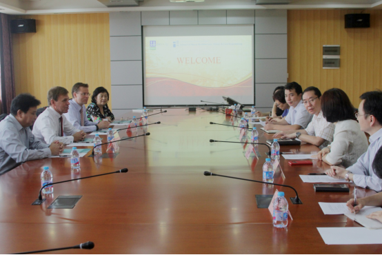 张新曙向来宾介绍了船建学院正在积极筹备的“2016年度国际研究生暑期学校”活动,并向来宾发出邀请,希望DNV可推荐领域内专家在暑期学校期间来院授课。