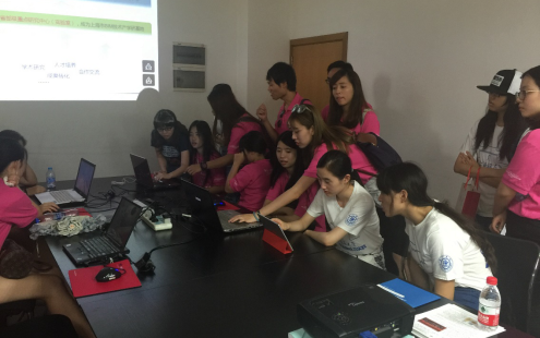 在随后的互动环节,研究中心硕士研究生黄静菲展示了BIM技术的一项基本功能——虚拟漫游,并指导访问团学生进行实际项目体验,使其进一步了解研究中心的研究方向与工作重点。