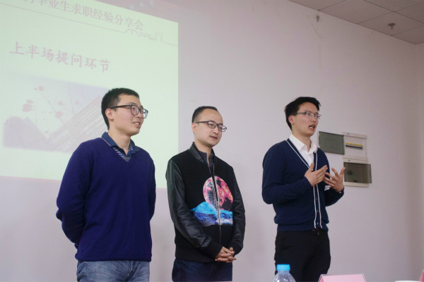 下半场嘉宾的分享结束之后,嘉宾们针对简历平庸如何解决,创业还是就业,颜值与求职的关系,就业平台以及跳槽等不同问题,结合自身经历,讲解深入浅出,现场气氛活跃,并在会后同学们建立了本次活动的微信群。