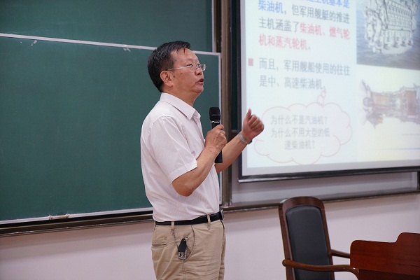052D的动力系统是由哪些装置构成的?中国军舰动力系统的现状及今后发展方向如何?9月1日,轮机工程专业张维竞教授来到三营十七连为船建学院师生解答这些疑惑。