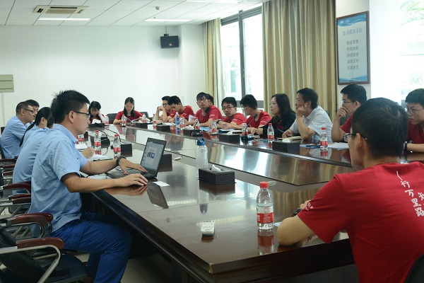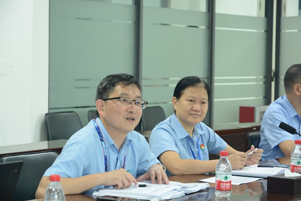7月29日,实践团一行首先前往位于广州市南沙区的广船国际有限公司走访调研。广船国际技术中心(海洋科技研究院)党总支书记胡永雄、常务副主任康友平、副主任何光伟、组织人事部部长助理肖志建、企业管理部副部长杨江军、技术中心科技应用设计所研发室副主任陈焕杰、组织人事部人事劳动室副主任刘凤斌参与座谈交流。肖志建首先向实践团表示欢迎,并向同学们简要介绍产品概况和公司组织架构情况。公司地处大湾区核心区域,区域地位优越,涉及造船、海工、机电、重型钢结构和成套设备产品,并立志成为全球海洋与重型装备市场技术领先、服务卓越的一流船舶企业。接着,张维竞教授和魏燕老师介绍了船建学院的教学和科研情况,以及实践团成员的专业背景。康友平主任详细介绍了中心情况以及高效的船舶生产线实况,其他部门负责人也分别解答了同学们提出的中美贸易战对船舶行业影响、豪华邮轮建造难点、船舶行业发展前景、职工生活保障等问题。