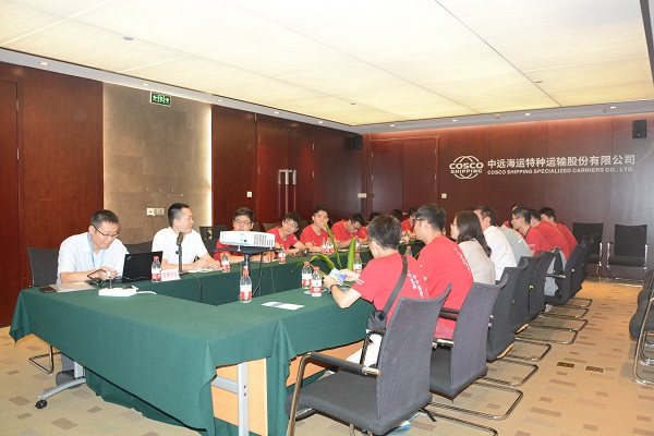7月30日,实践团前往位于广州市天河区的中远海运特运公司进行参观实践。特运人力资源部副总经理张丛、岸基人事经理金占涛、人事主管李永康等对实践团一行的到访表示热烈欢迎。上午,张丛经理为同学们介绍了特种船运输及相关业务发展情况和公司战略目标。随后观看的宣传片全面展示了特运的综合实力及全球竞争力。营销中心周小勇经理对特运的船队发展、航线服务、经营和管理理念等进行了细致讲解,货运技术中心总经理蔡连财也结合特种船运输实例介绍了中远海运特运领先的特种运输技术实力和研究现状。