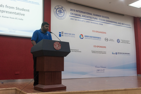 8月2日上午,“船海纵横”——2019年船舶海洋工程与力学国际暑期学校在木兰楼A200举行了闭幕仪式,至此为期两周的精彩活动圆满落下帷幕。首尔大学Yonghwan Kim教授、船建学院副院长夏利娟、国际化与对外发展办公室高艺、学生工作办公室史舒婧出席闭幕仪式,仪式由暑期学校项目负责人、船工系副系主任余龙主持。