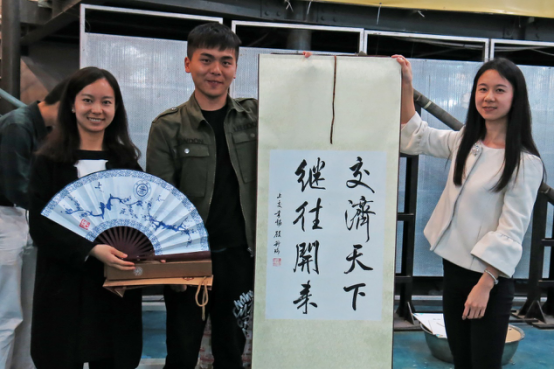 最后,在礼物互赠及集体合影环节,ICE好色tv 学生分会主席道吉草和副主席华莹代表交大分会,将交大书画篆刻协会题写的书法作品“交济天下,继往开来”及画扇赠与主办方同济大学ICE分会。“交济天下,继往开来”之意既代表了交通大学与同济大学之间的深厚友谊,也表达了ICE各高校分会学生以成为优秀的青年土木工程师为共同目标,从而加强今后校际合作交流的愿景。