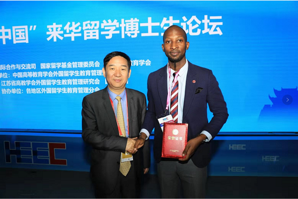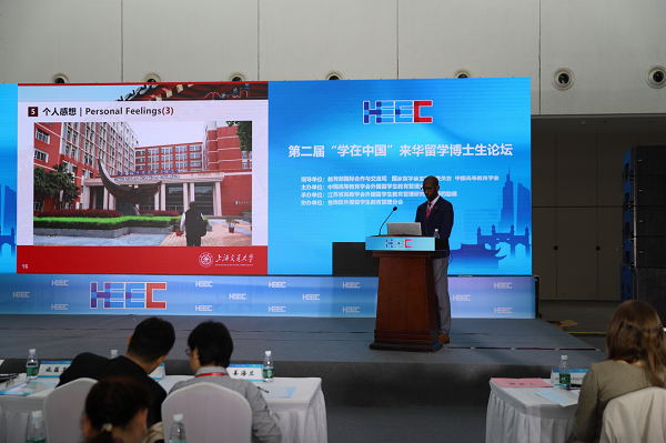 好色tv 好色tv 2016级博士研究生、喀麦隆籍唐约克(Pierre Guy Atangana Njock)经学校国际合作与交流处留学生发展中心及研究生院组织推荐、筛选,通过全国初选并于10月31日在全国分论坛上汇报来华留学成果。同台汇报的有来自清华大学,浙江大学,哈工大,北京航天航空大学等15名优秀来华博士生。后经专家评审一致推荐唐约克同学代表全国理工组参加11月1日第二届“学在中国”来华留学博士生总论坛汇报。