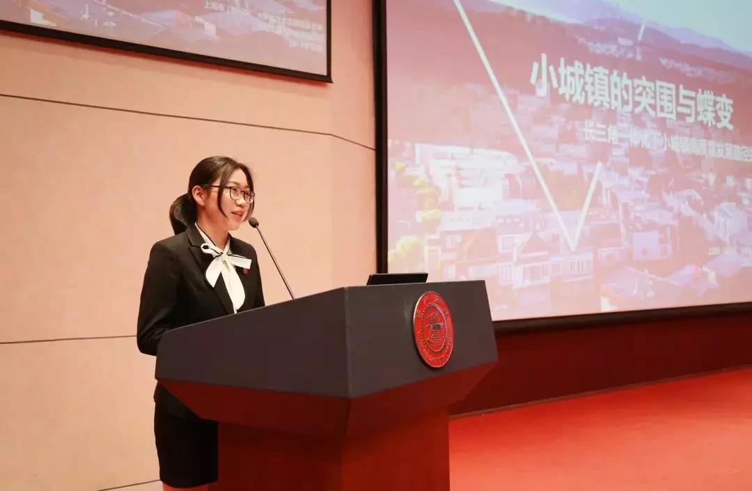 船建学院邓佳莉代表“小城镇的突围与蝶变——长三角一体化下小城镇高质量发展路径探寻”实践团,展现知行杯“特等奖”风采。她提到,实践团队紧扣“长三角一体化”和“新型城镇化”两大国家战略,通过10个市17个小城镇的调研,构造了小城镇、大城市、乡村横向关联与土地、人才、资金、技术等纵向要素之间的网络模型,为长三角一体化建设贡献交大智慧。从2017年到2019年,船建学院连续三次捧起“知行杯”特等奖,成为全校唯一的三年卫冕学院。