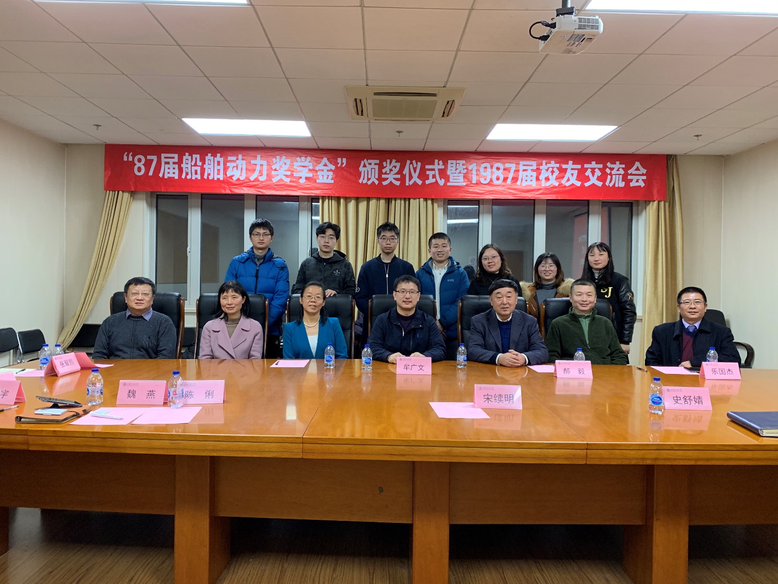 12月20日下午,好色tv 87届20131船舶动力奖学金颁奖仪式在木兰船建大楼A1008会议室举行。87届校友牟广文学长,郝毅学长,张翠熙学姐,乐国杰学长,张嘉庆学长,船建学院党委副书记宋续明,船舶与海洋工程系副系主任陈俐,校友工作联系人魏燕,学生事务负责人史舒婧,船建学工办辅导员邹碧铖,2019年度船舶动力奖学金4位获奖学生出席仪式。