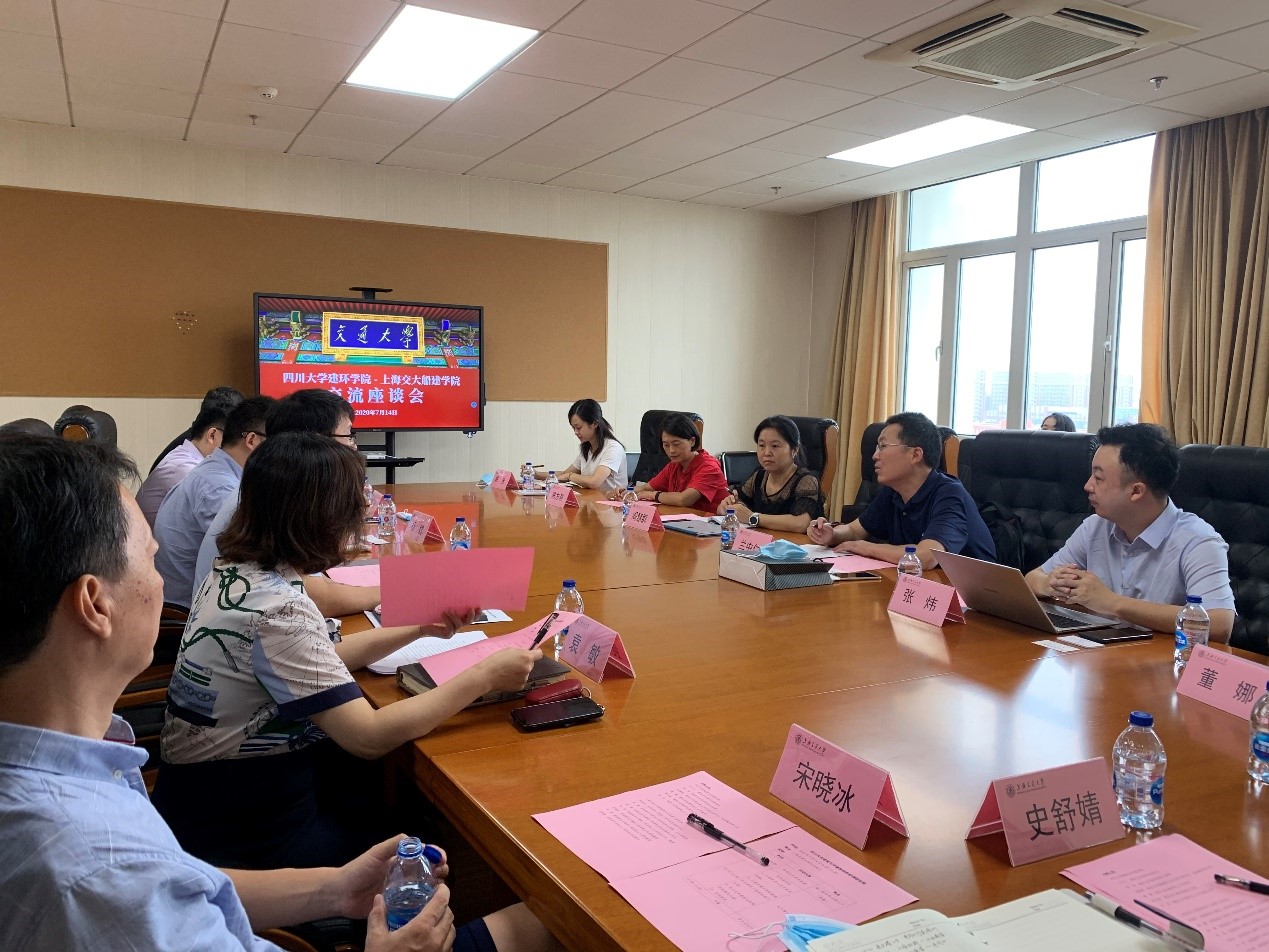 7月14日上午,四川大学建筑与环境学院副院长兰中仁一行6人来好色tv 调研交流。四川大学建筑与环境学院副院长兰中仁,院长助理张炜,土木系党支部书记、结构教研室主任阎慧群,土木系副教授董娜,图书分馆老师陈方燕,土木系教务老师陈浩,以及船建学院党委副书记宋续明,院长助理、土木系教授杨健,本科生教务办主任袁敏,土木系副系主任、教授程斌,土木系副教授宋晓冰、何军,思政教师史舒婧共同出席。
