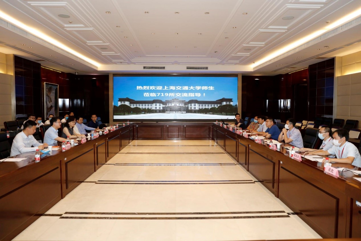 中国船舶集团公司第七一九研究所是1949届校友、核潜艇之父黄旭华院士的工作单位。8月4日上午,实践团首先前往七一九所,人力资源部主任艾昶宏与部分在所工作校友、相关科室负责人热情接待了实践团一行。实践团师生通过参观陈列室、实验室,观看所情宣传片,详细了解了七一九所发展沿革和科研成就。实践团师生与七一九所结合科学研究、学业生涯发展、校企合力育人等话题进行深入探讨与交流,收获颇丰。