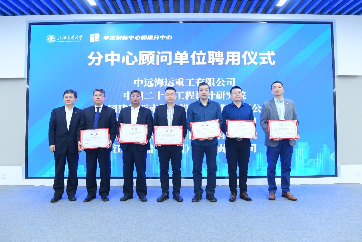 行业企业是分中心建设的重要支撑力量。中远海运重工有限公司、中国二十冶工程设计研究院、中国建筑西南勘察设计研究院有限公司、湖南中昱智云物联科技有限公司、普冷国际物流(上海)有限公司、江南造船(集团)有限责任公司、中国建筑第八工程局有限公司、中海企业集团上海公司、中国船舶集团公司第七〇一研究所、中国船舶集团公司第七〇八研究所、上海市基础工程集团有限公司、上海船舶研究设计院、招商局邮轮研究院(上海)有限公司、中建一局集团第一建筑有限公司获得了分中心顾问单位聘任。丁奎岭副校长为顾问单位颁发聘书。