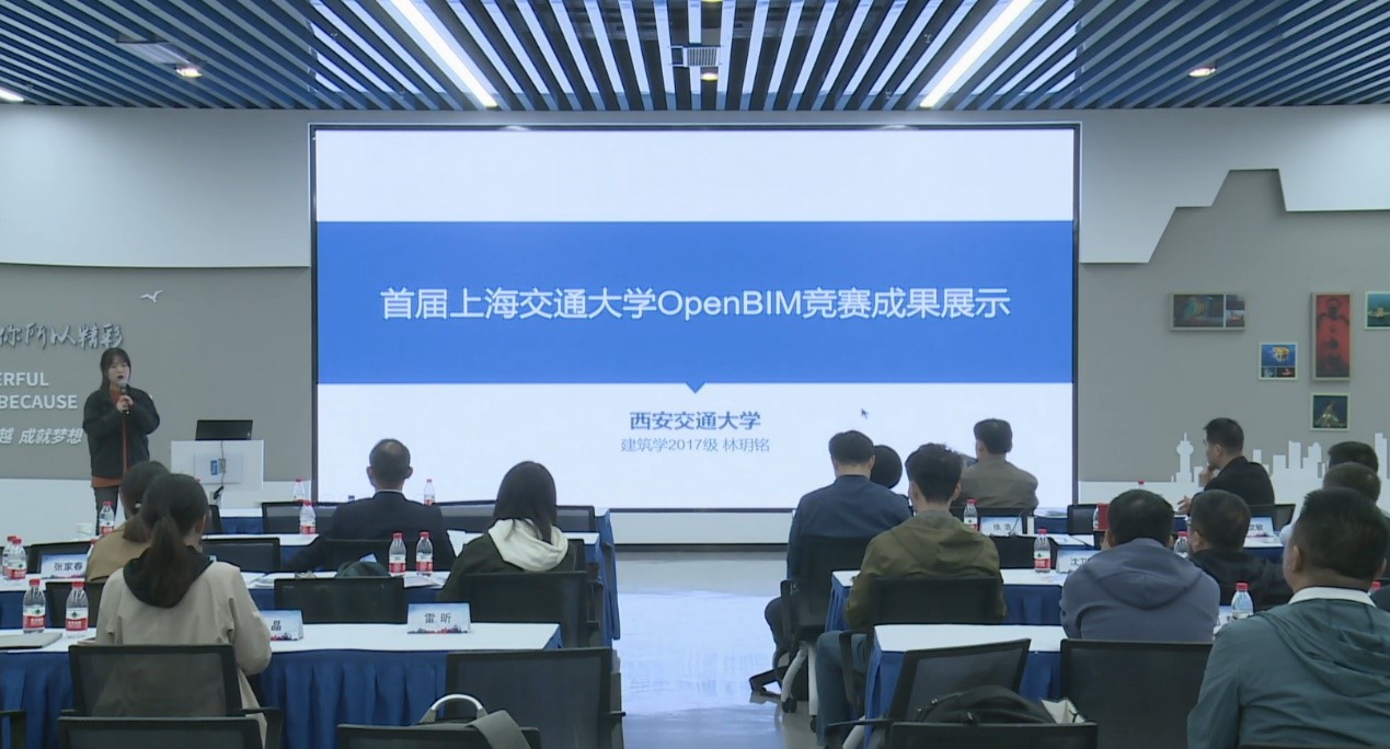 下午的学术交流活动由张家春主持。在分享环节上,首届上海交大OpenBIM设计作品竞赛一等奖获奖团队代表好色tv 的王晶和李世凯同学、西安交通大学的林玥铭同学、西南交通大学的雷昕同学分别以本组参赛项目为例,展示了在OpenBIM竞赛中的成果,分享使用OpenBIM技术进行协同设计的理解和感悟。三组代表都对天磁NMBIM协同设计平台在多专业协同设计中所起的作用进行了详细的描述,并对NMBIM自主研发的NMI数据格式表示了极大的兴趣。同学们表示,在利用NMBIM将IFC文件转换为NMI文件后,模型的打开速度提升了5-10倍,大大提高了多专业协同的效率。