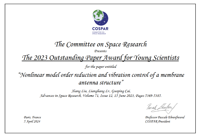 工程力学系刘翔获得国际空间研究委员会 (COSPAR) “青年科学家杰出论文奖”