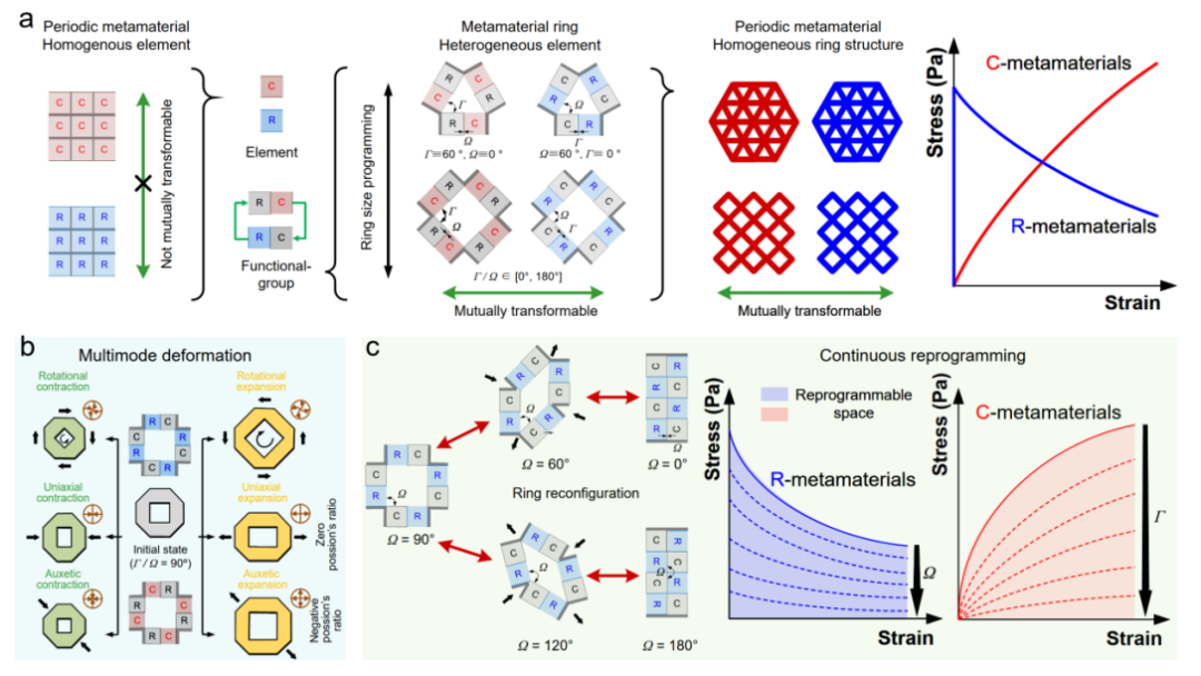 船建学院教师在《Nature Communication》发文提出基于功能团转换和环重构的可重编程机械超材料