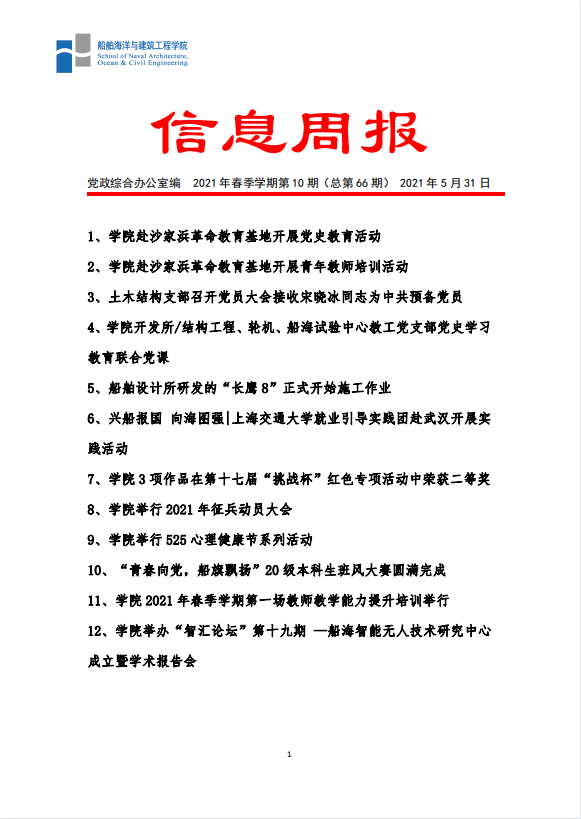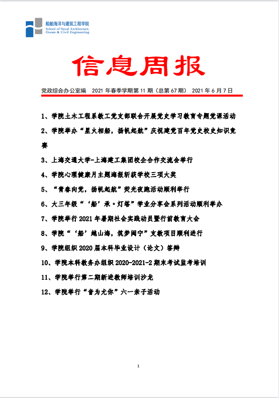 船建学院信息周报 2021年春夏学期第10期