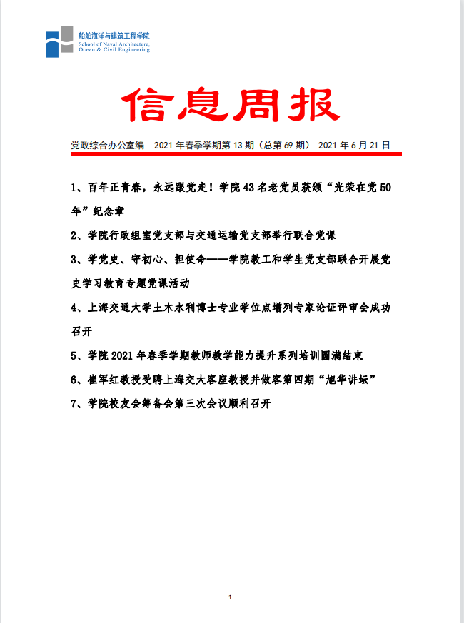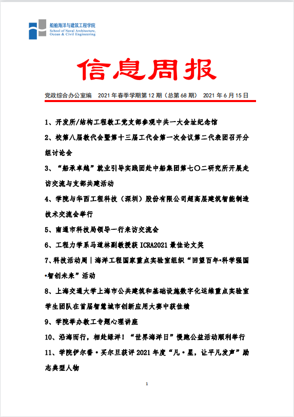 船建学院信息周报 2021年夏季学期第3期